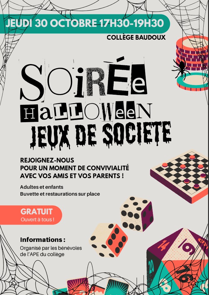 😁Les élèves pourront participer à une soirée Jeux de Société.